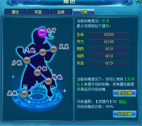 玩家可通过提升七魄等级来获得人物属性上的加成。