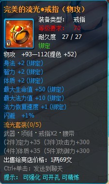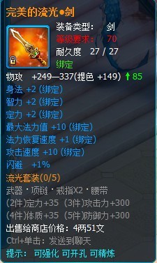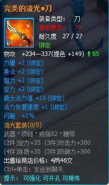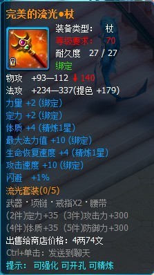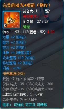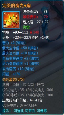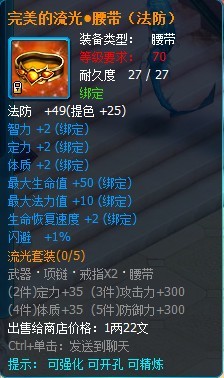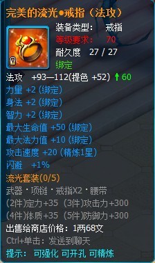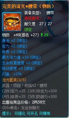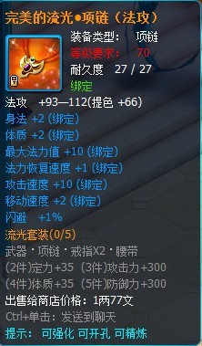 流光套装属于70级的攻击套装,部件包括有武器、项链、戒指和腰带。(目前还没掉落 ,在下个版本会增加掉落途径)