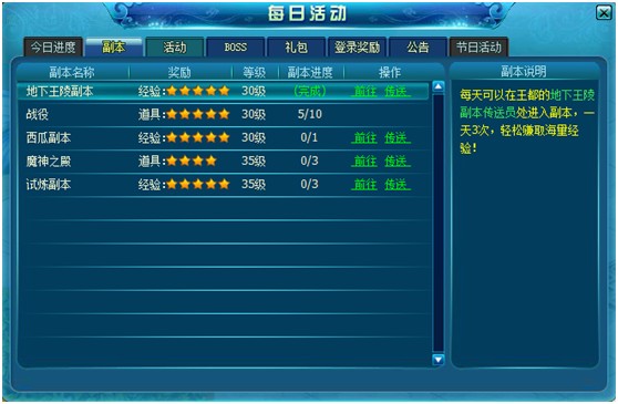4. 完成副本后可以在退出副本NPC处退出副本,否则系统将会在30秒内将副本里的玩家自动传送到副本入口。
