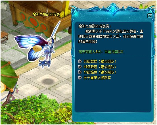 (1)点击地图旁边『活』→『副本』→魔神之殿,点击“前往”即可自动寻路前往魔神之殿副本传送员处。