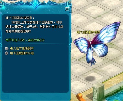 (1)点击地图旁边『活』→『副本』→地下王陵,点击“前往”即可自动寻路前往地下王陵副本传送员处。
