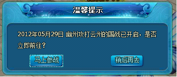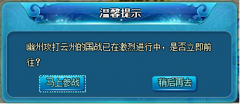 4、国战开启时会向攻防双方玩家弹出快速进入按钮。