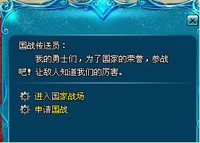 2、国战开始,系统将向攻防双方国家的玩家发送快速进入弹窗。玩家也可以通过王都-国战传送员进行进入。