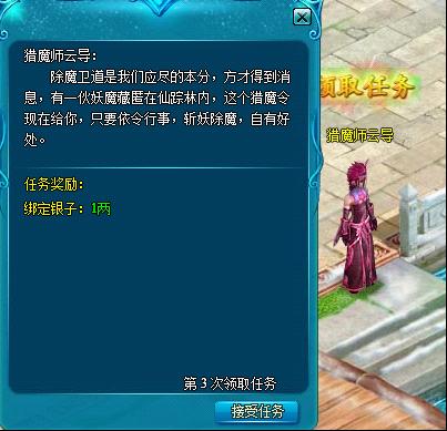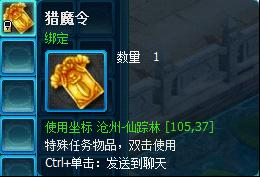 1、 在猎魔师云导处领取任务,获得任务道具猎魔令;