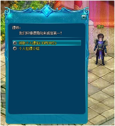 (1)、在王都—镖师(63,35)处使用换车令,可以更换镖车的颜色。