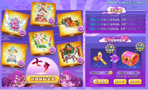 消耗约会钥匙打开宝箱即有机会获得永久绝版座椅