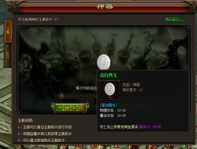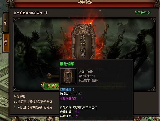 角色等级达到70,开启系统,主界面神器按键,播放特效。
