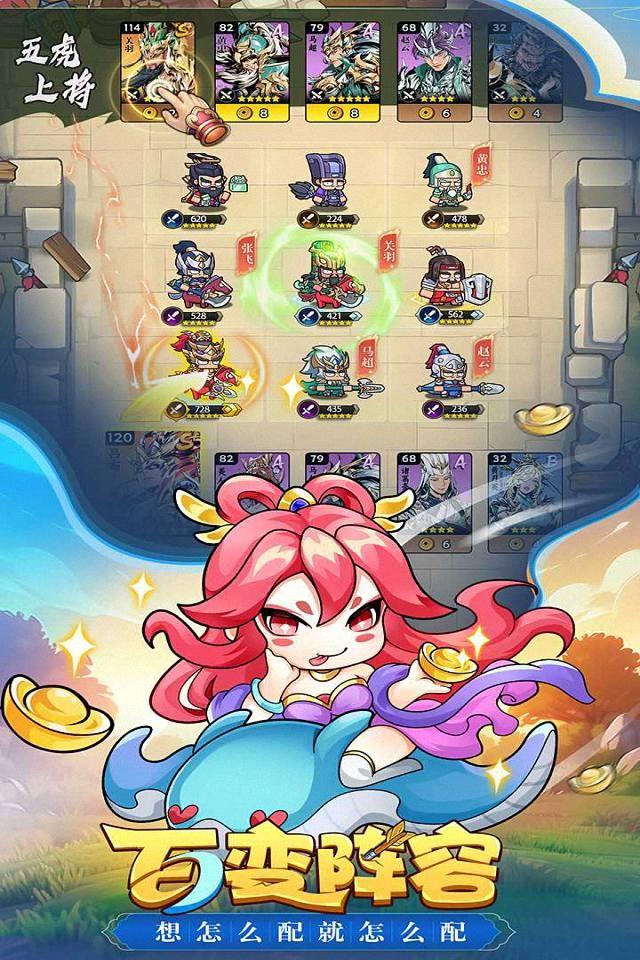 《雄心之上》是一款卡通画风三国题材的卡牌自走棋手游。游戏中10分钟一局的快节奏对战,PVE推图+PVP竞技双模式,百种阵容组合等你开发,五虎上将"冲锋陷阵,"四大都督"火烧连营,每个组合都有专属战斗特效!从无双吕布到神算诸葛,每位武将都有独特定位和成长路线!