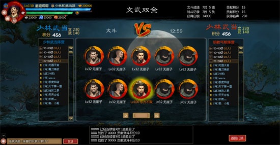 文斗期间,玩家可以选择画面中出现的各类题目来进行作答,回答正确即可获得积分及奖励!
