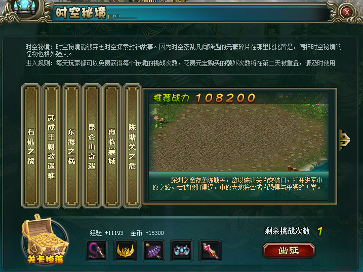 玩家可以更具自身的战力来选择不用的秘境进行闯关,成功过关就能获得各种法宝碎片。