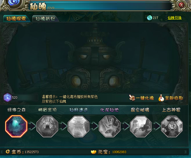 化魂可以将无用的仙魄分解成经验供其他仙魄升级。