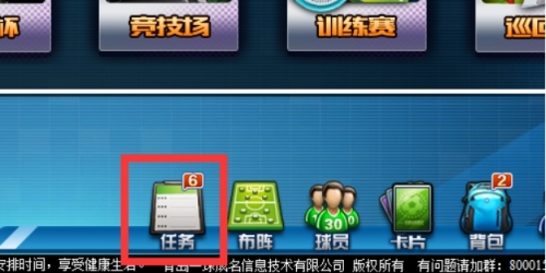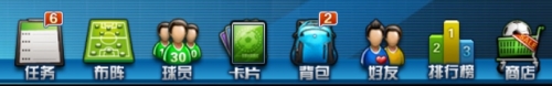 位于游戏页面下方的导航栏,可以查看到日常任务奖励领取及完成情况、进行布阵、对球员进行操作、查看背包、查看及添加好友、商城入口和服务器中各类信息的排行榜等。