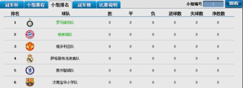 冠军杯小组赛分组为6人一组,赛制采用双循环主客场进行比赛,小组排名会根据所踢比赛的胜平负关系进行排名,若积分相同则按照净胜球→进球数→失球数的优先级排序排位。