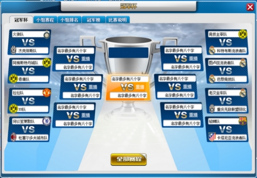 玩家为上一赛季各级别联赛冠军,比赛开启人数最少为24人,若人数不足系统将根据联赛等级与排名自动补齐。(最高级的每组联赛中可获得额外名额,最高联赛每组的前3名可进入冠军杯备选名单)