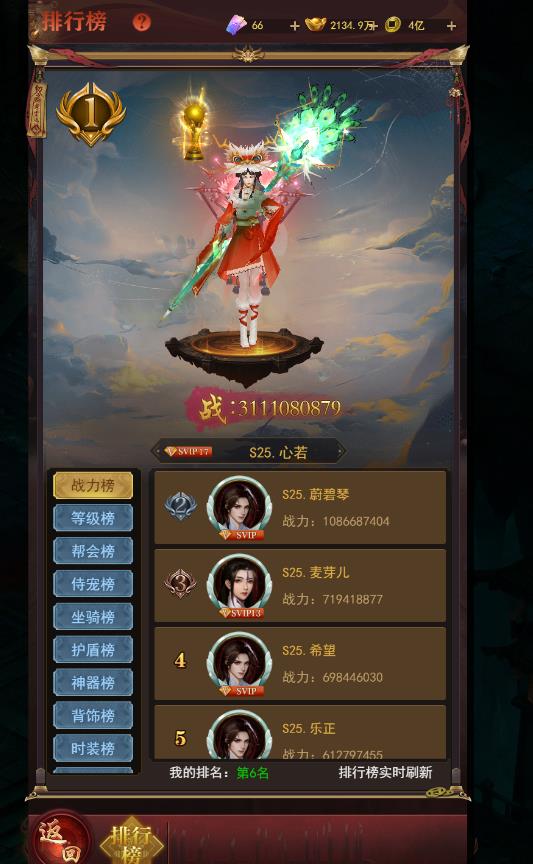 排行榜实时变化,仅供参考,以游戏内实际为准
