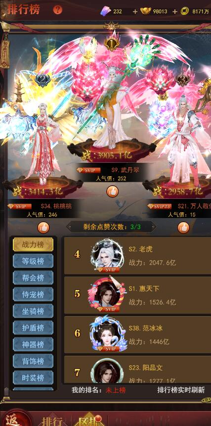 排行榜实时更新,截图仅做参考,实际以游戏内为准