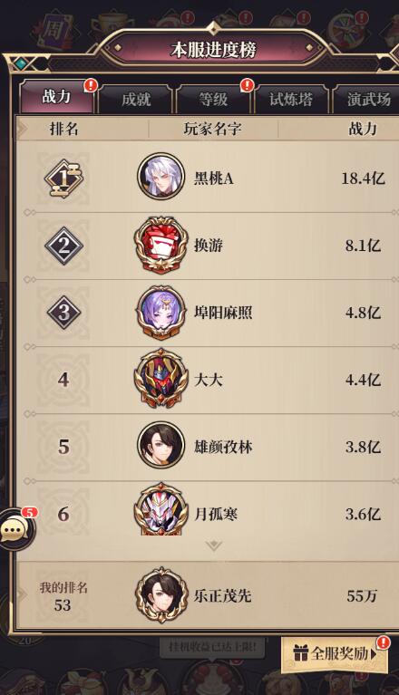 排行榜实时更新,截图仅做参考,实际以游戏内为准