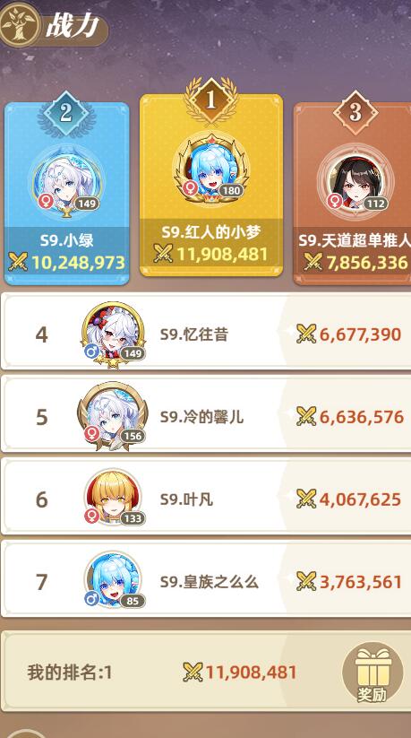 排行榜实时更新,截图仅做参考,实际以游戏内为准