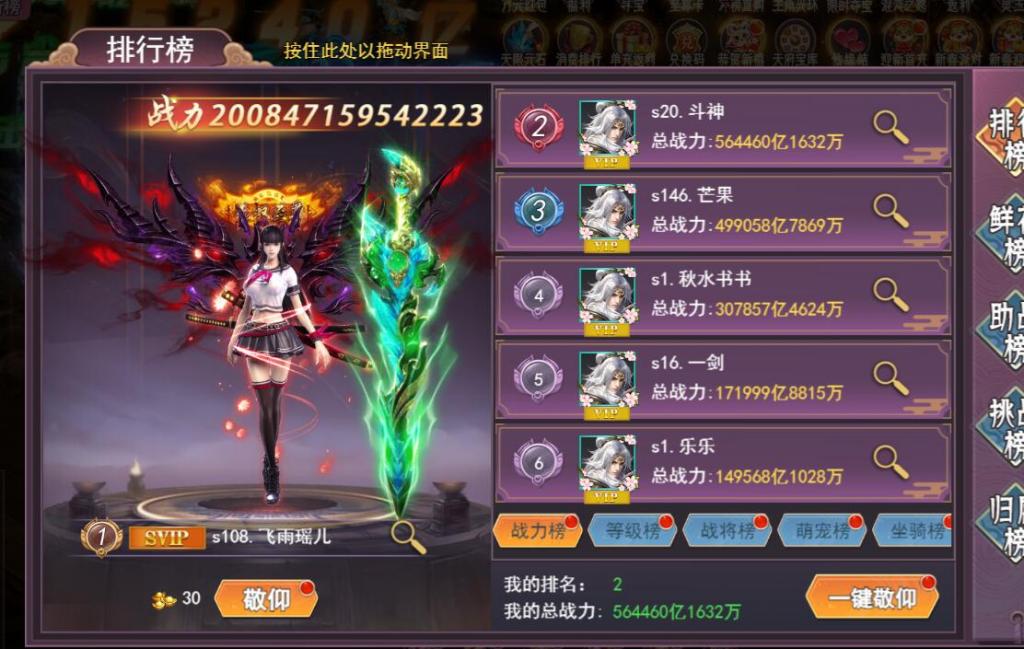 排行榜实时更新,截图仅做参考,实际以游戏内为准